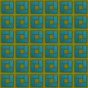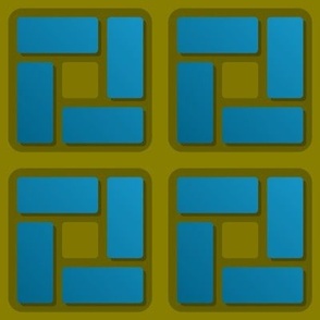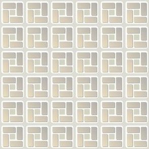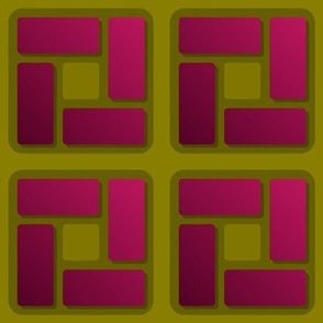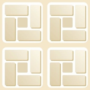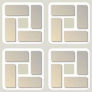 A modern geometric design featuring soft, rounded squares and pinwheel-like rectangles with subtle three-dimensional depth. The composition blends structure and softness, creating a balanced, contemporary visual rhythm.