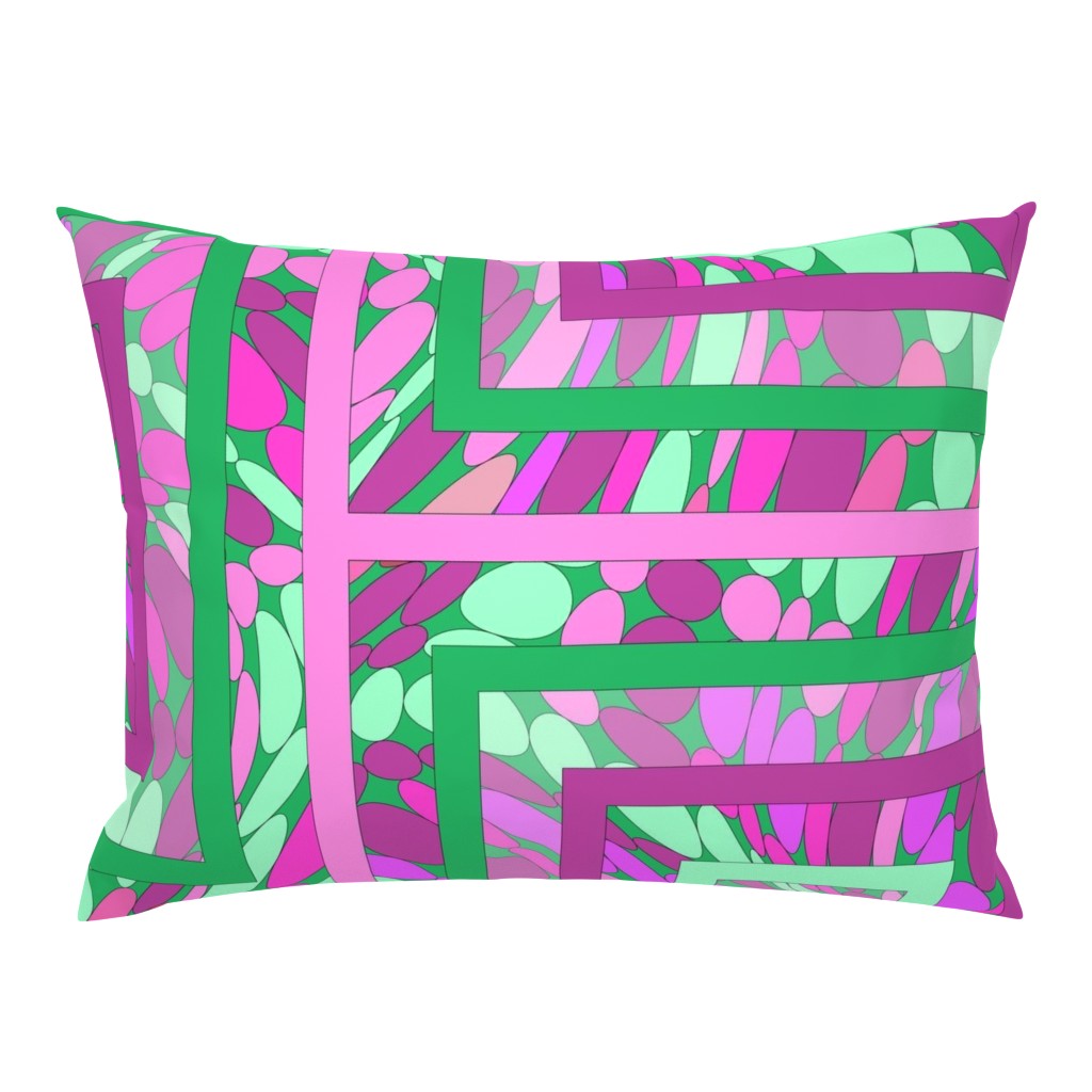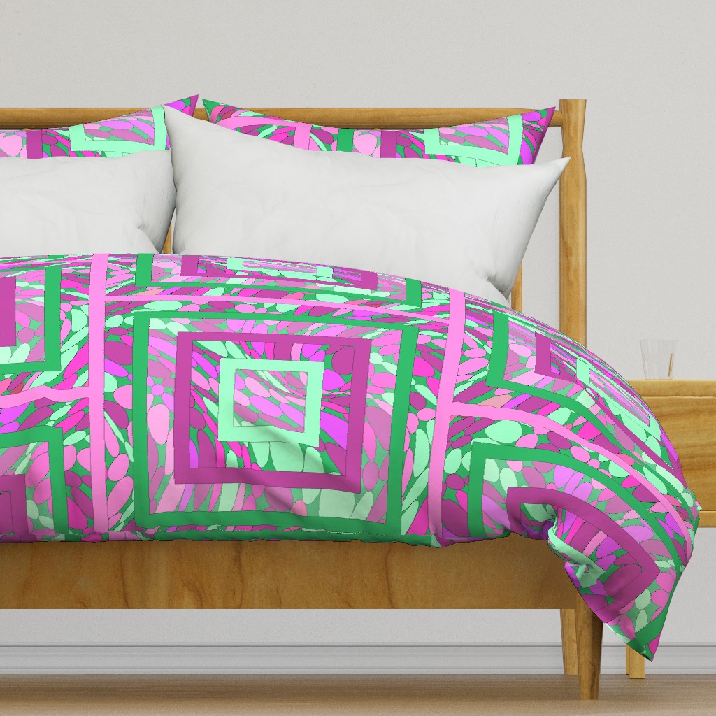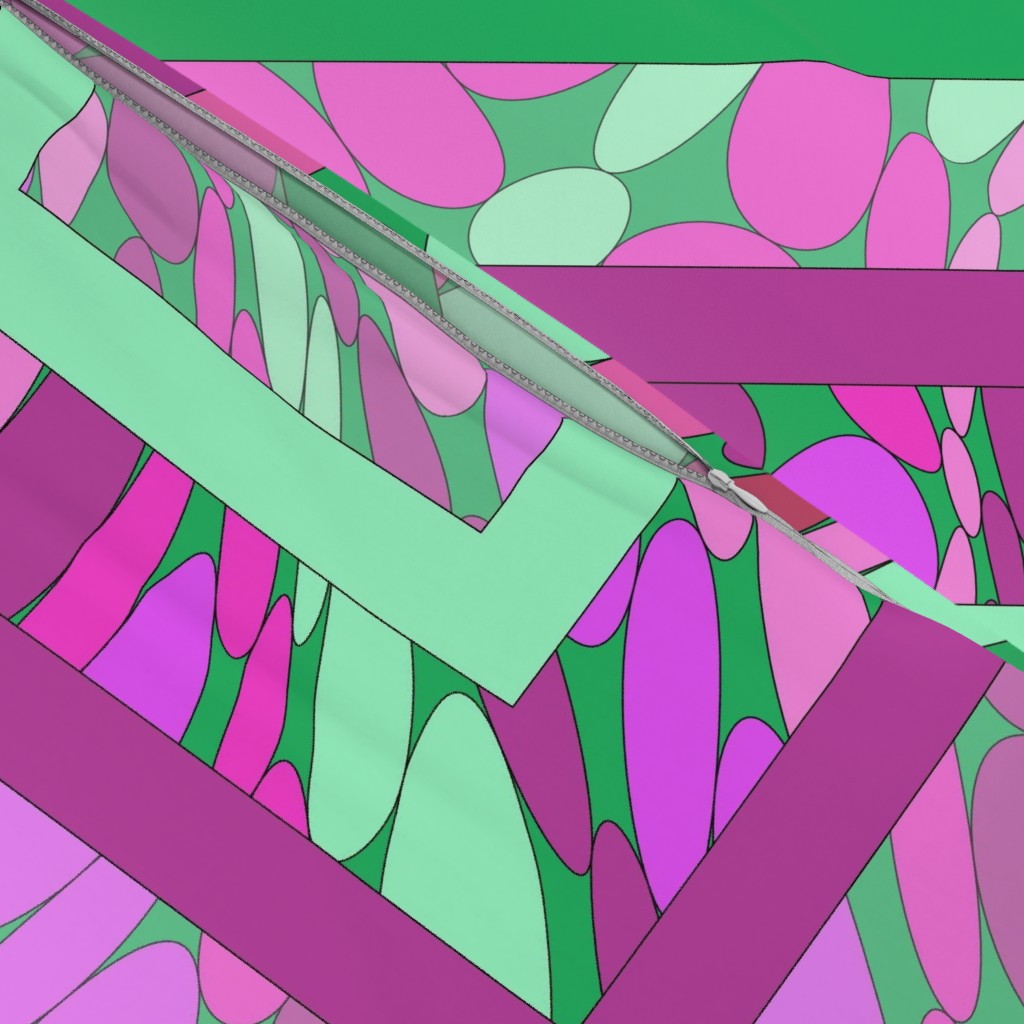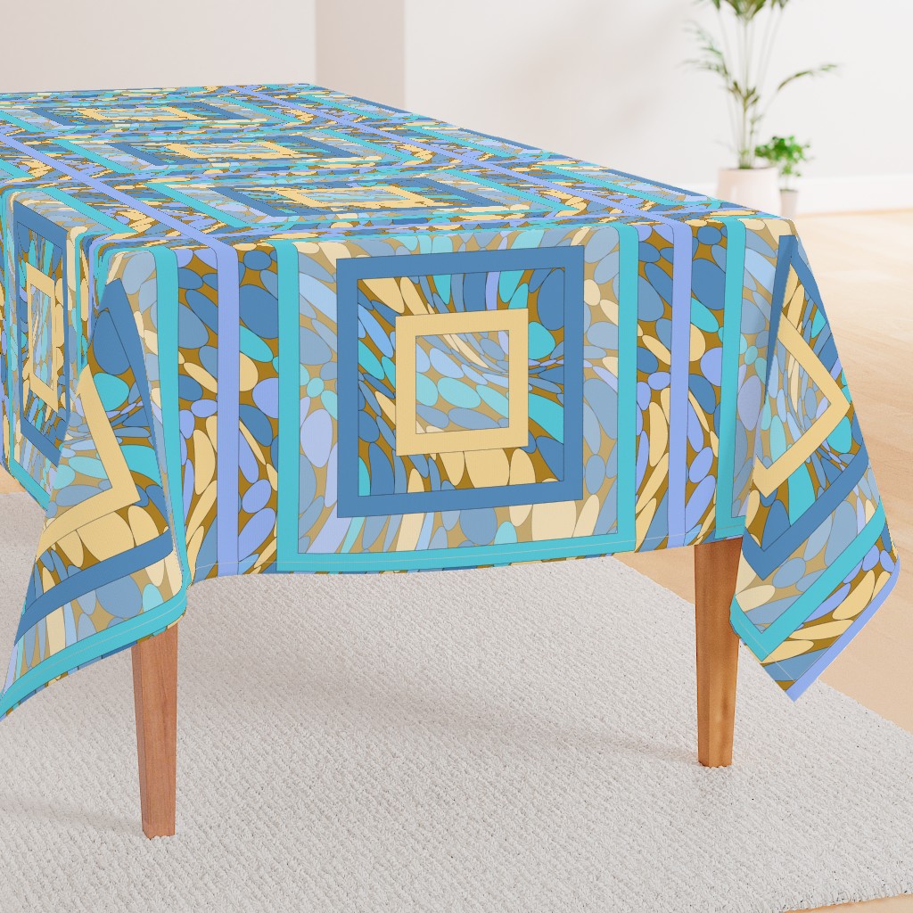 This geometric collection plays with squares inside squares in multiple colors and scales, with a unique version featuring pebble-like circles and ovals tucked within the forms. The mix of minimal and more intricate patterns allows endless pairing and contrast.