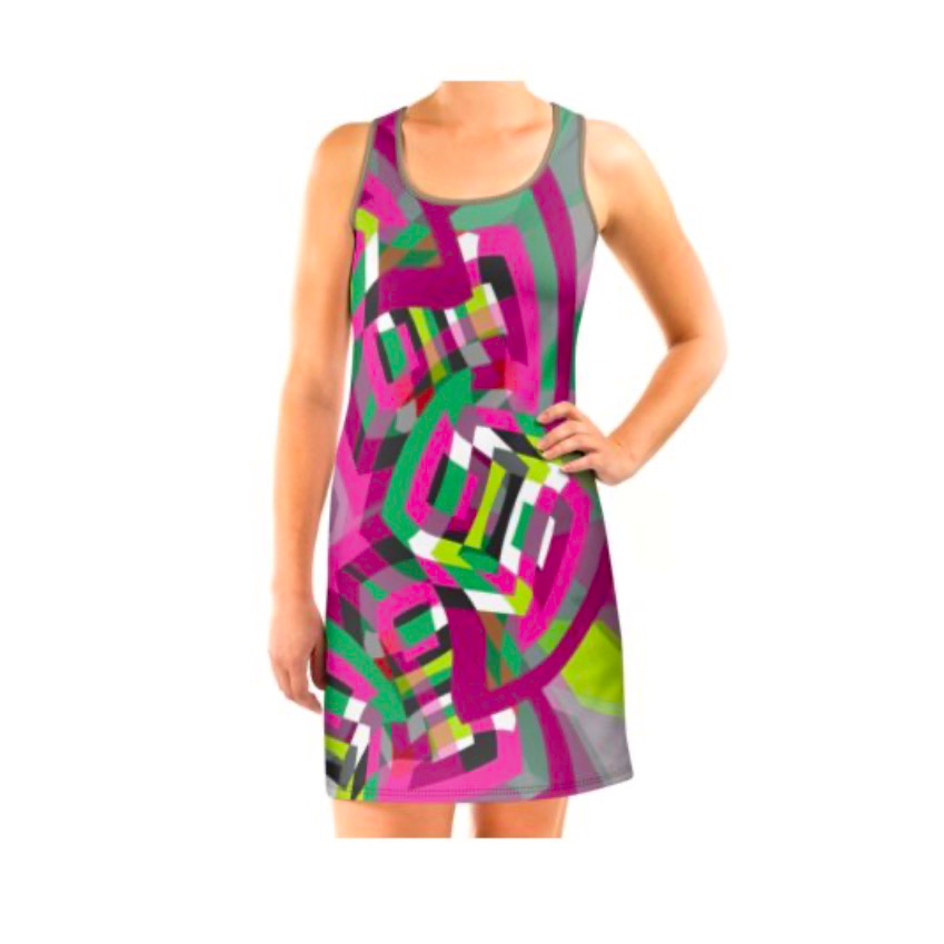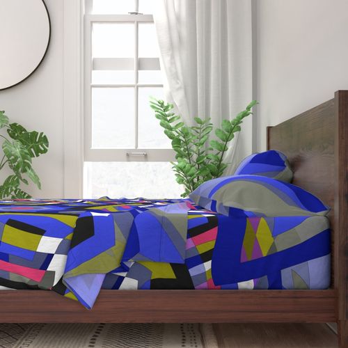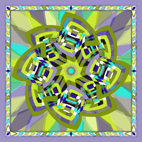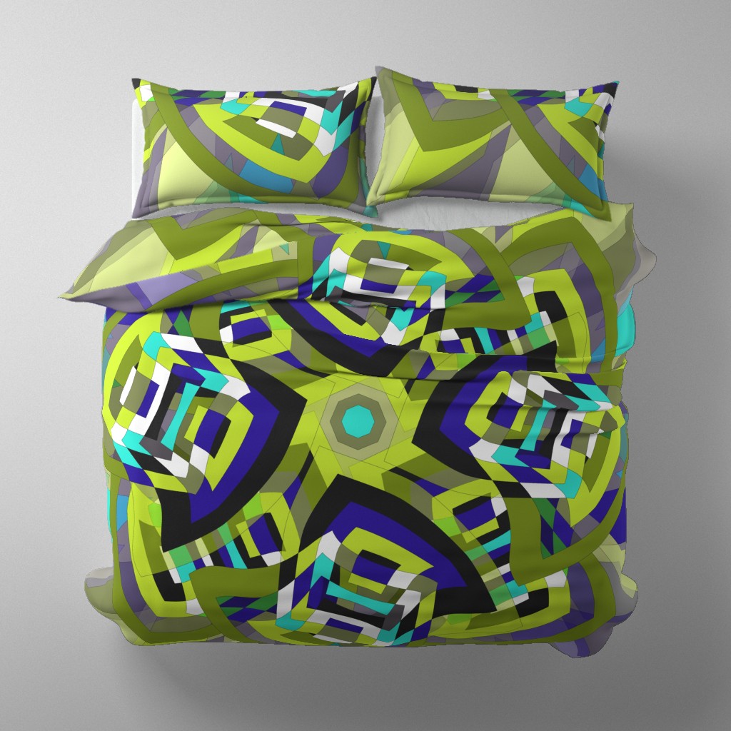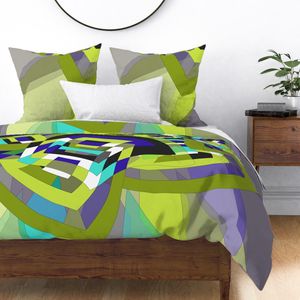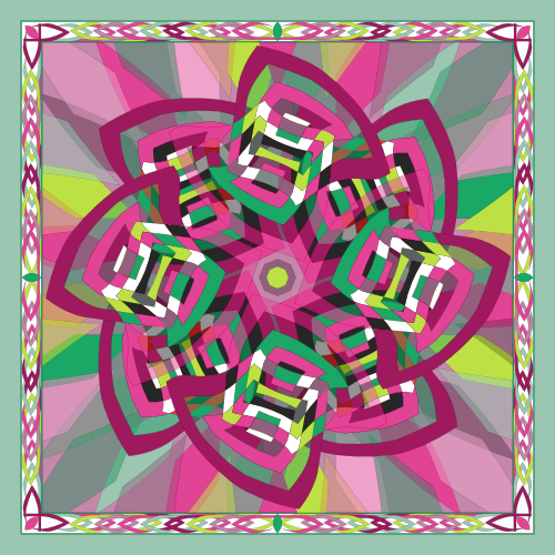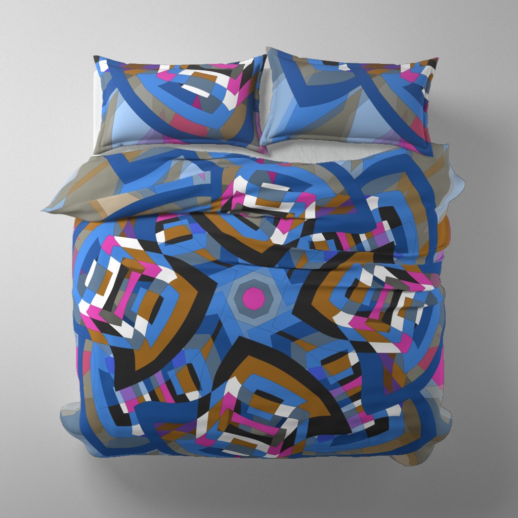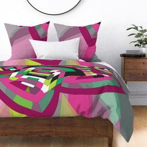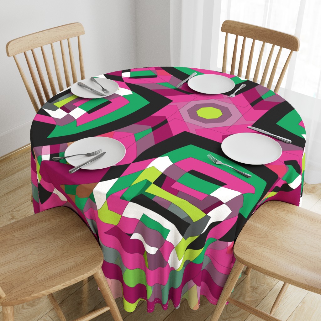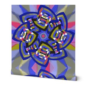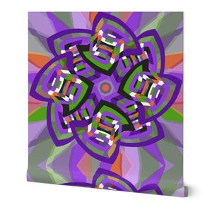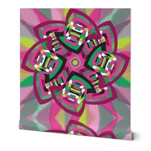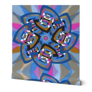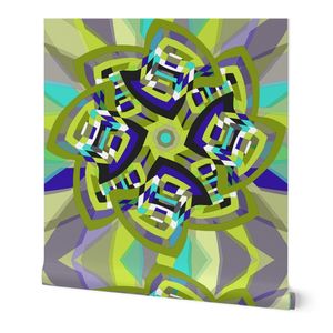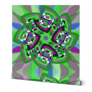 A retro-styled abstract pattern built around a pinwheel shape that seems to turn in the wind. The flowing geometry and playful movement give the design a vibrant, vintage energy.